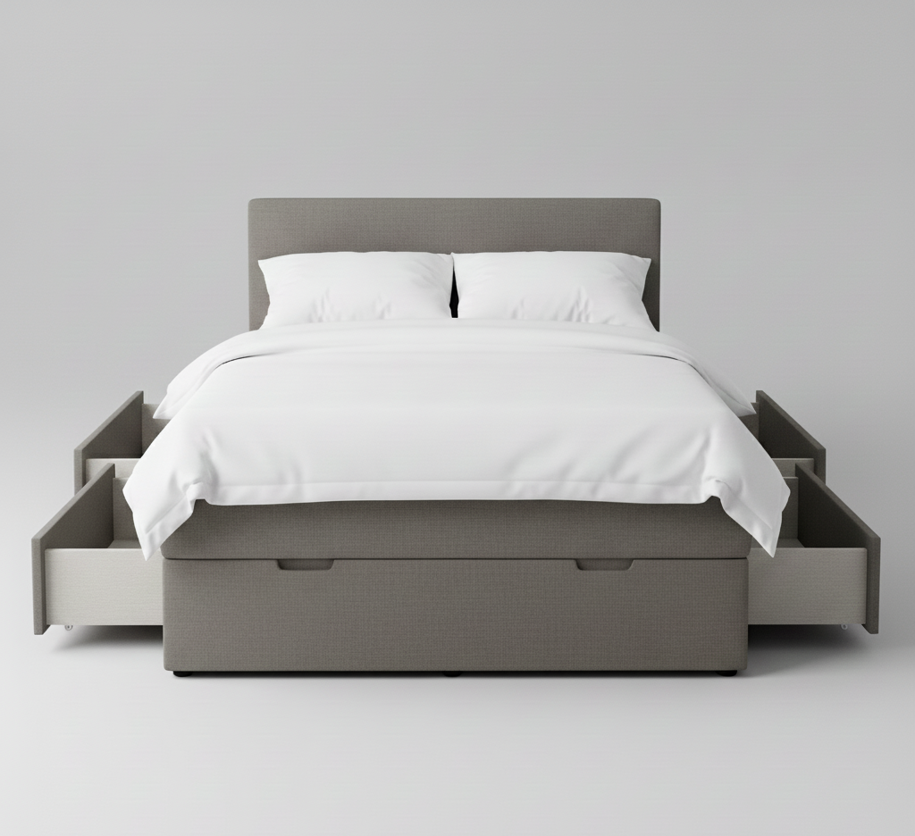 A practical storage solution designed for modern bedrooms, this 4-drawer divan bed combines comfort with functionality. The integrated drawers maximise under-bed space, ideal for storing bedding, clothing, or seasonal items without requiring additional furniture. Built on a sturdy divan base, it offers reliable support and durability. Perfect for smaller rooms or anyone seeking efficient organisation, this bed delivers both restful sleep and smart space management in one elegant piece.