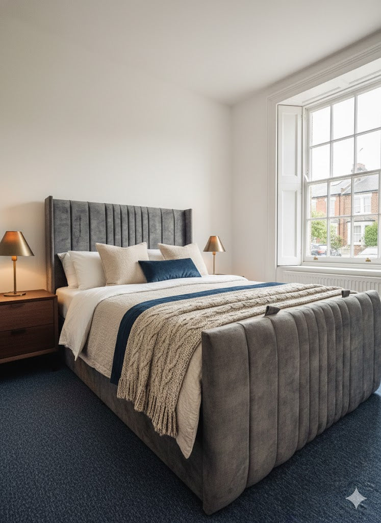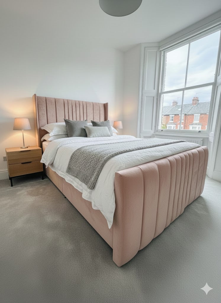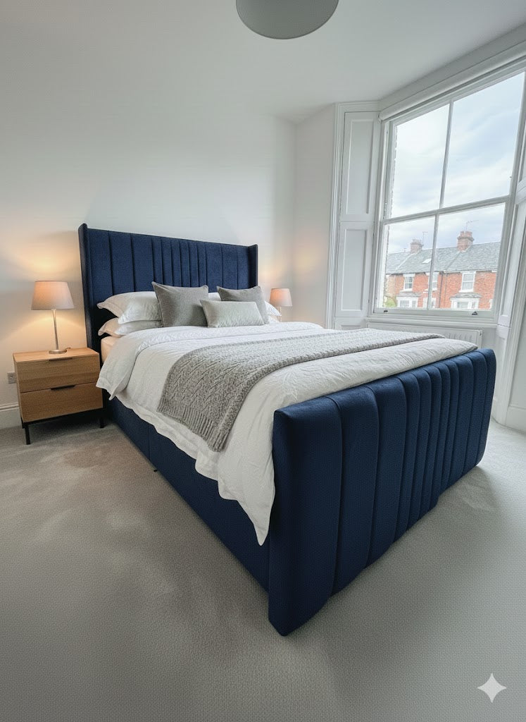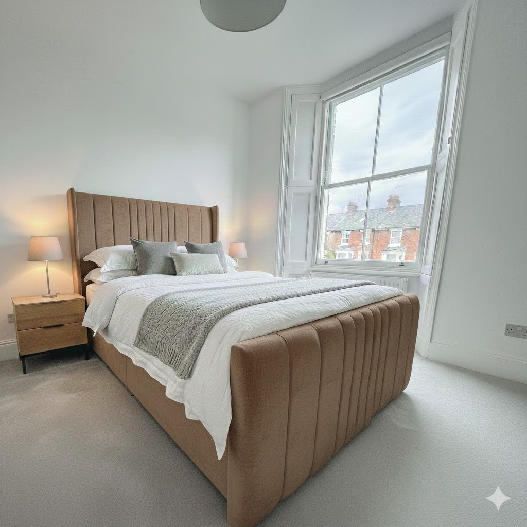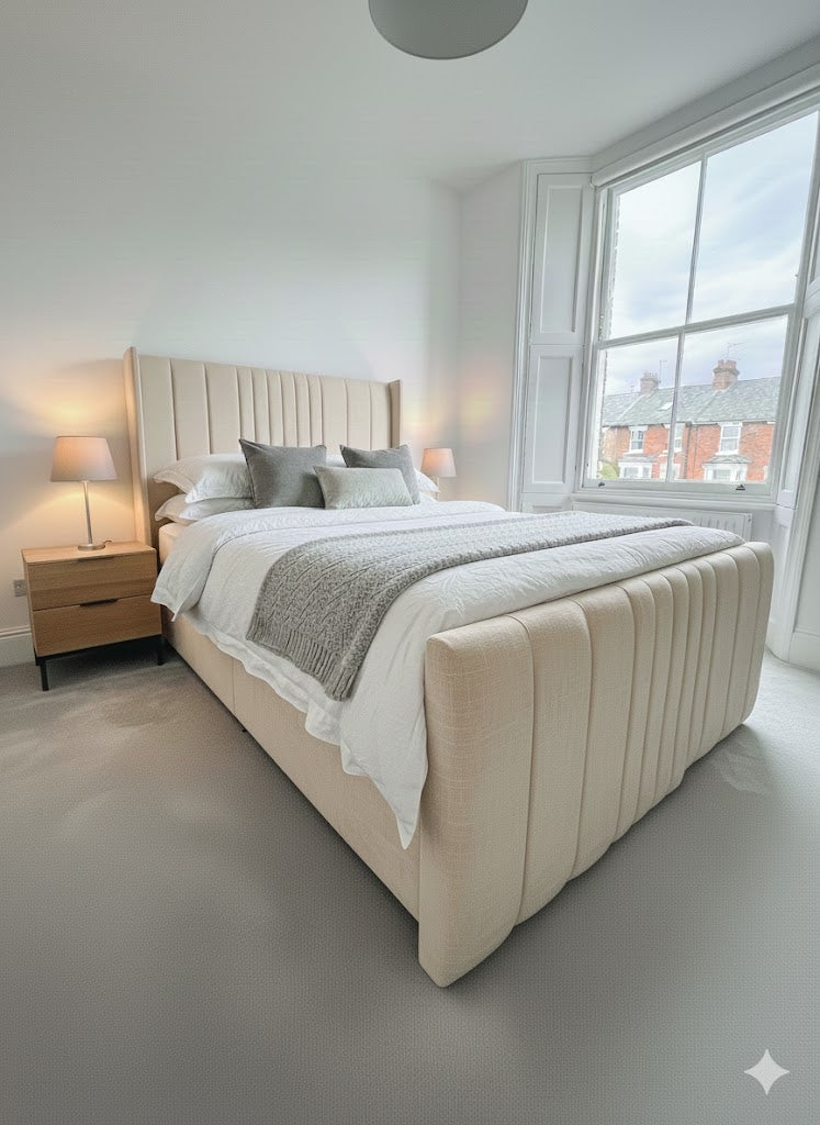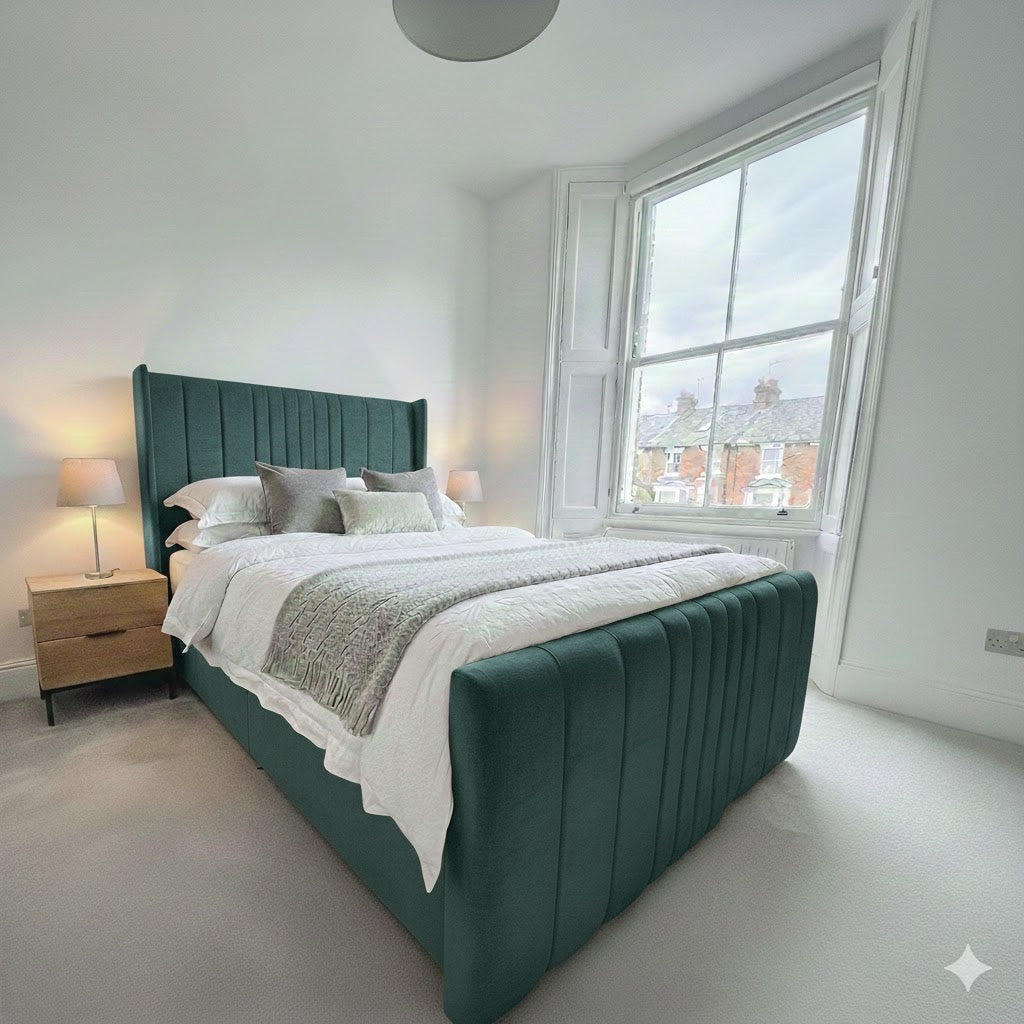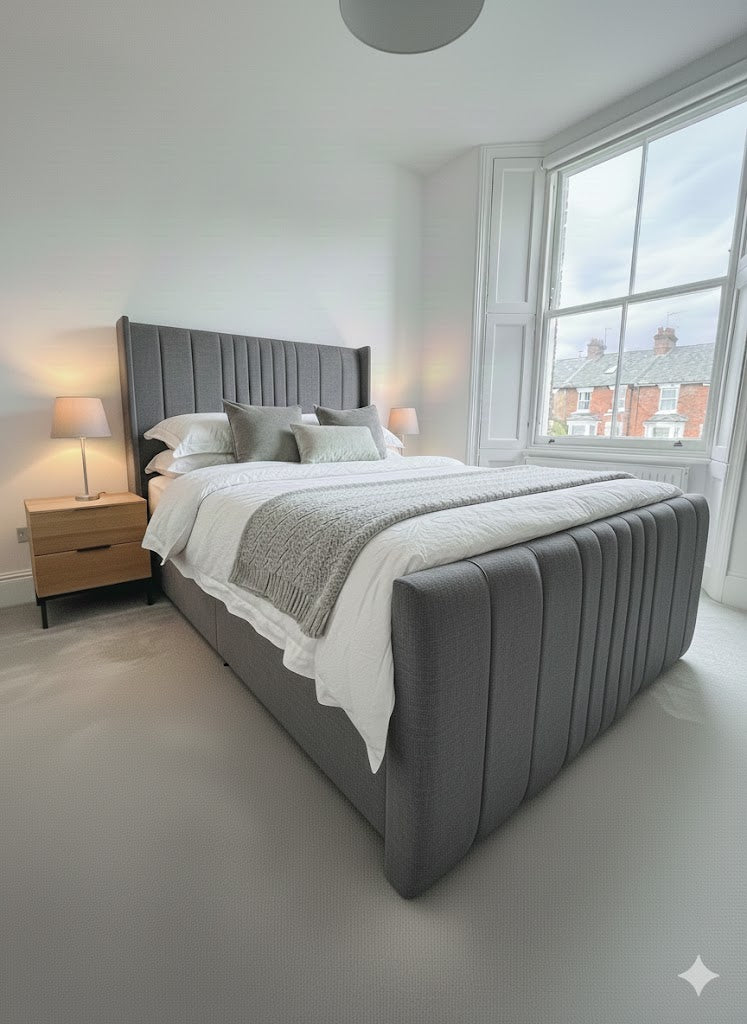 The Coninston fabric Divan ottoman combines contemporary design with practical storage functionality. Featuring a 54" scattered line thin wing headboard and footboard, this piece delivers a sophisticated aesthetic with subtle textural detail. The ottoman base provides hidden storage capacity, making it an intelligent choice for maximising bedroom space. Upholstered in quality fabric, the wing design creates a refined silhouette whilst maintaining a streamlined profile. Ideal for those seeking a modern bed frame that balances style with everyday utility.