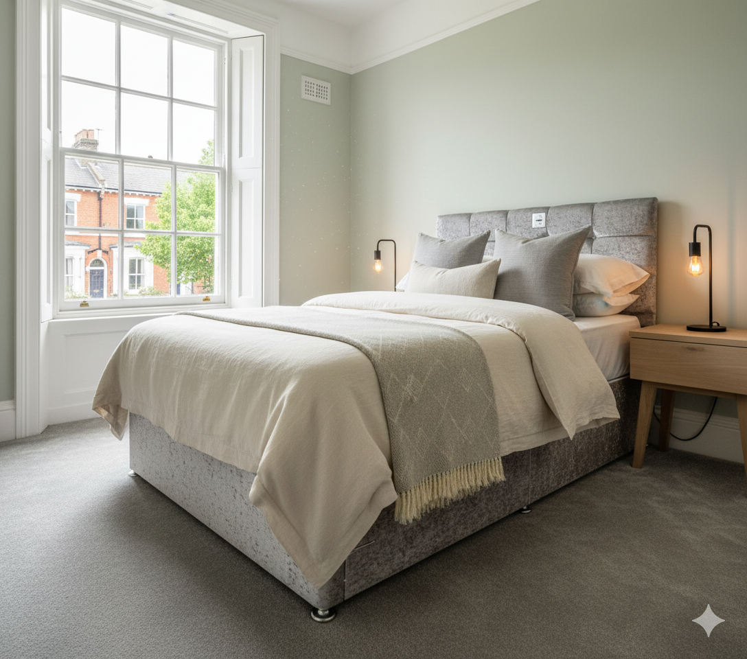 For a Double Divan Bed, we recommend a minimum room size of 3m × 3.5m to allow for comfortable movement and furniture placement.