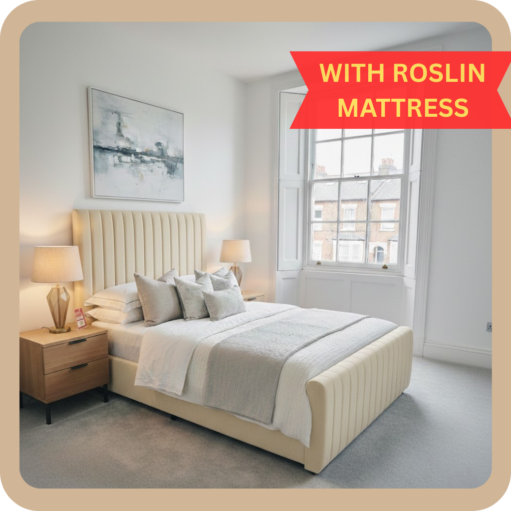 Your perfect sleep is delivered in one box! No more searching for separate pieces. This set comes complete with the sturdy 54" line narrow headboard and footboard *and* the premium Roslin Mattress, ready to transform your room into a modern retreat.