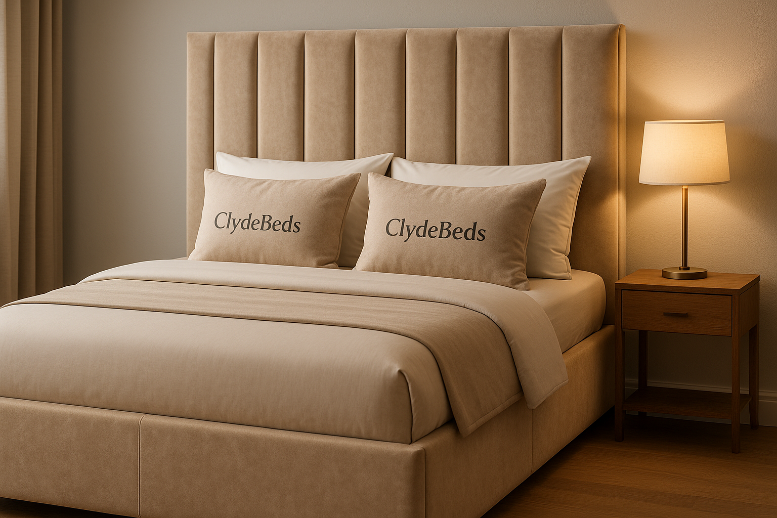 Upholstered in a plush, durable beige fabric, the bed offers a sophisticated, tailored look. The neutral tone is both calming and highly adaptable, providing a timeless foundation for your bedding and decor accessories. The [Specify Headboard Style, e.g., cushioned headboard with vertical stitching] provides comfortable back support for reading.